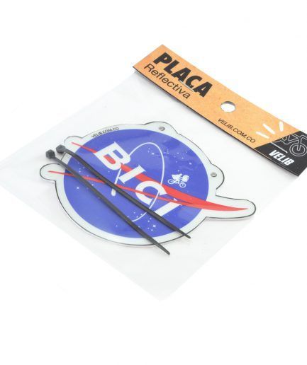 Placa decorativa reflectiva con protección UV transparente para que resista la lluvia y el sol. Puedes instalarla bajo el sillín, manubrio o parrilla.